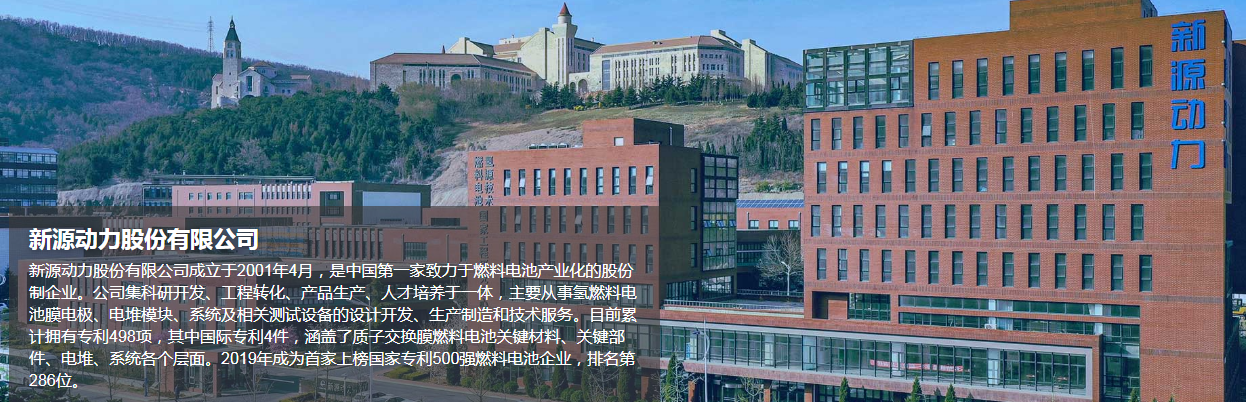 新源動力股份有限公司成立于2001年4月,是中國第一家致力于燃料電池產業化的股份制企業。公司集科研開發、工程轉化、產品生產、人才培養于一體,主要從事氫燃料電池膜電極、電堆模塊、系統及相關測試設備的設計開發、生產制造和技術服務。目前累計擁有專利498項,其中國際專利4件,涵蓋了質子交換膜燃料電池關鍵材料、關鍵部件、電堆、系統各個層面。2019年成為首家上榜國家專利500強燃料電池企業,排名第286位。
