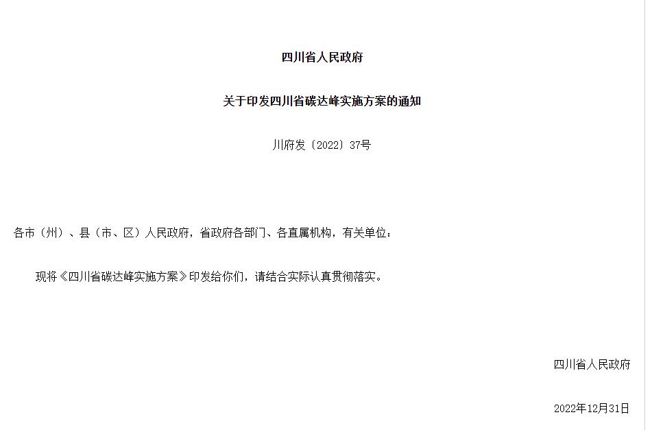 氫啟未來(lái)網(wǎng)獲悉,1月5日,四川省人民政府印發(fā)《四川省碳達(dá)峰實(shí)施方案》