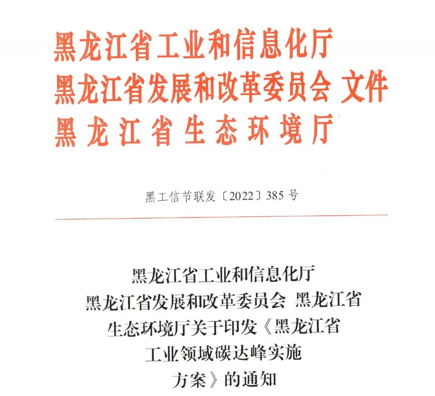 12月14日,黑龍江省工信廳、省發(fā)改委、省生態(tài)環(huán)境廳三部門聯(lián)合發(fā)布《黑龍江省工業(yè)領(lǐng)域碳達峰實施方案》