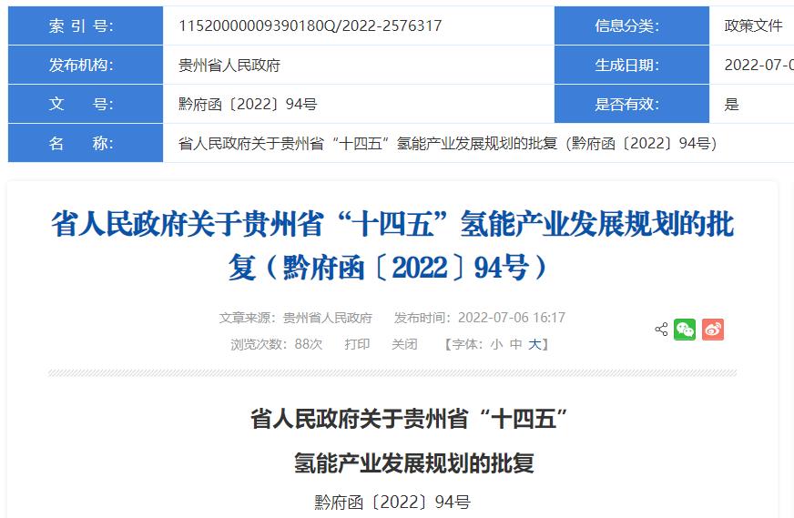 氫啟未來(lái)網(wǎng)獲悉,7月6日貴州省人民政府官網(wǎng)發(fā)布關(guān)于貴州省“十四五”氫能產(chǎn)業(yè)發(fā)展規(guī)劃的批復(fù)內(nèi)容。