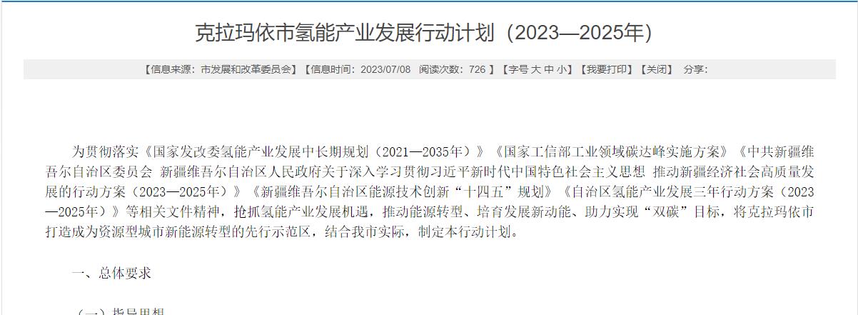 持續加碼氫產業!克拉瑪依市發布氫能產業發展行動計劃