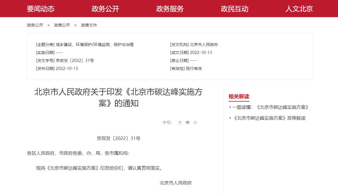氫啟未來網(wǎng)獲悉,近日,北京市人民政府發(fā)布關于印發(fā)《北京市碳達峰實施方案》的通知