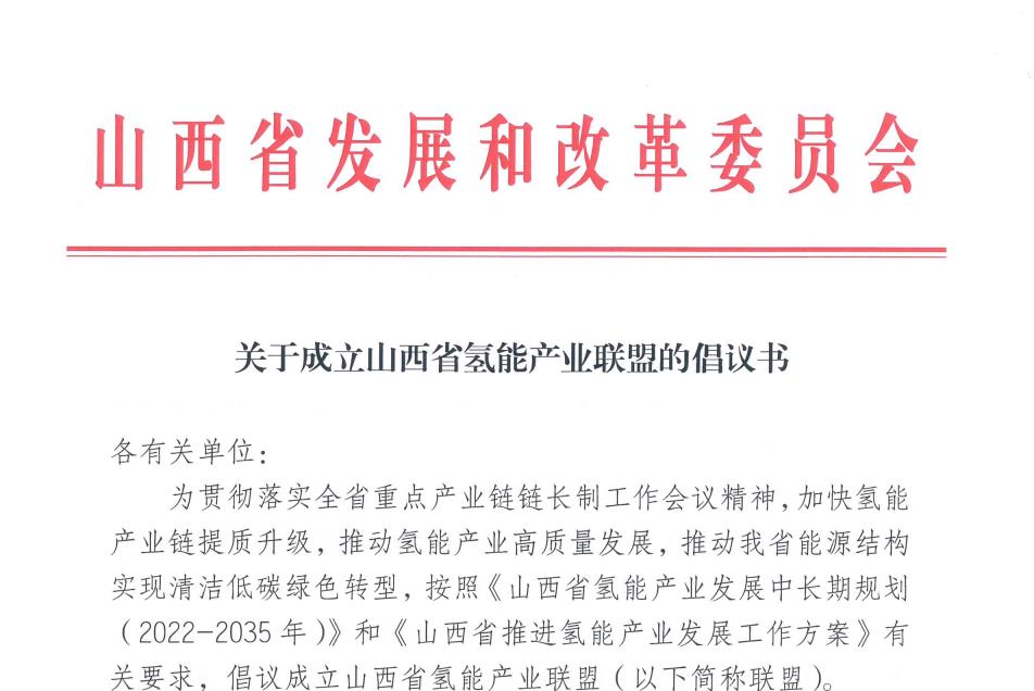推進氫能在交通、儲能、工業等領域規模化應用,山西省發改委倡議成立山西省氫能產業聯盟