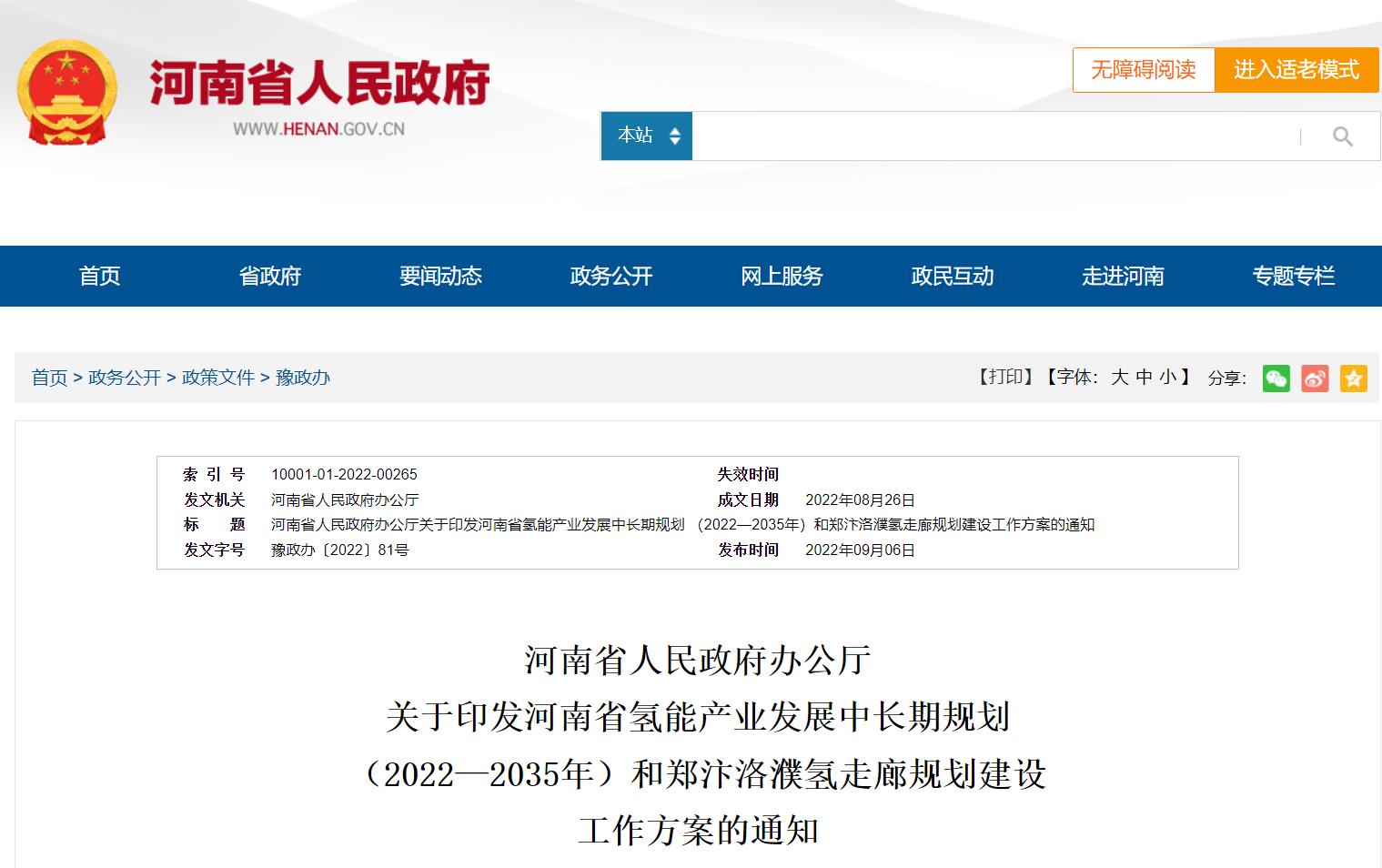 9月6日,河南省人民政府辦公廳發布關于印發河南省氫能產業發展中長期規劃(2022-2035年)和鄭汴洛濮氫走廊規劃建設工作方案的通知,其中河南省氫能產業發展中長期規劃(2022—2035年)原文如下
