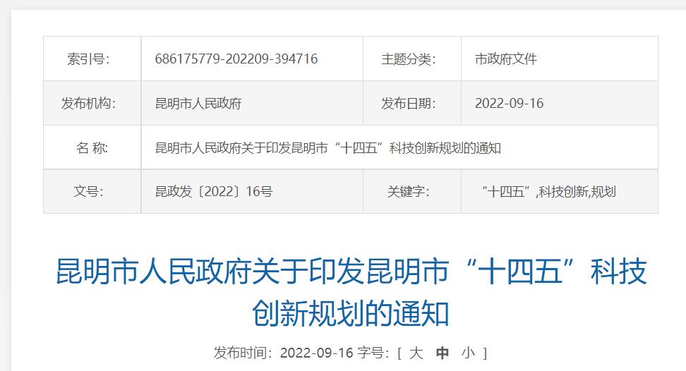 氫啟未來網獲悉,9月16日,昆明市人民政府發布關于印發昆明市“十四五”科技創新規劃的通知