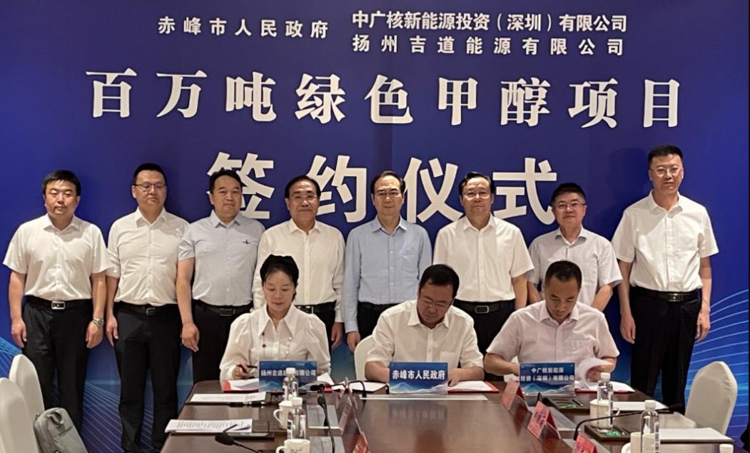 6月13日,赤峰市政府攜手中廣核新能源投資(深圳)有限公司、揚州吉道能源有限公司簽署了風光制氫百萬噸綠色甲醇項目合作框架協議。赤峰市委書記萬超岐親臨簽約儀式。項目建成后,預計每年可實現產值84億元,貢獻稅收10億元,安排就業1000人左右,將為赤峰市產業轉型升級和經濟高質量發展發揮重要作用。赤峰市相關部門和地區的主要負責人參加了簽約儀式。