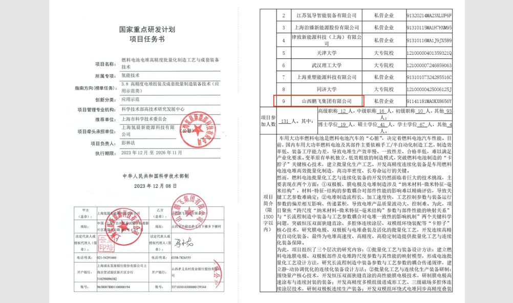 億華通牽頭!國家重點研發計劃“氫能技術”3.4項目正式獲批立項