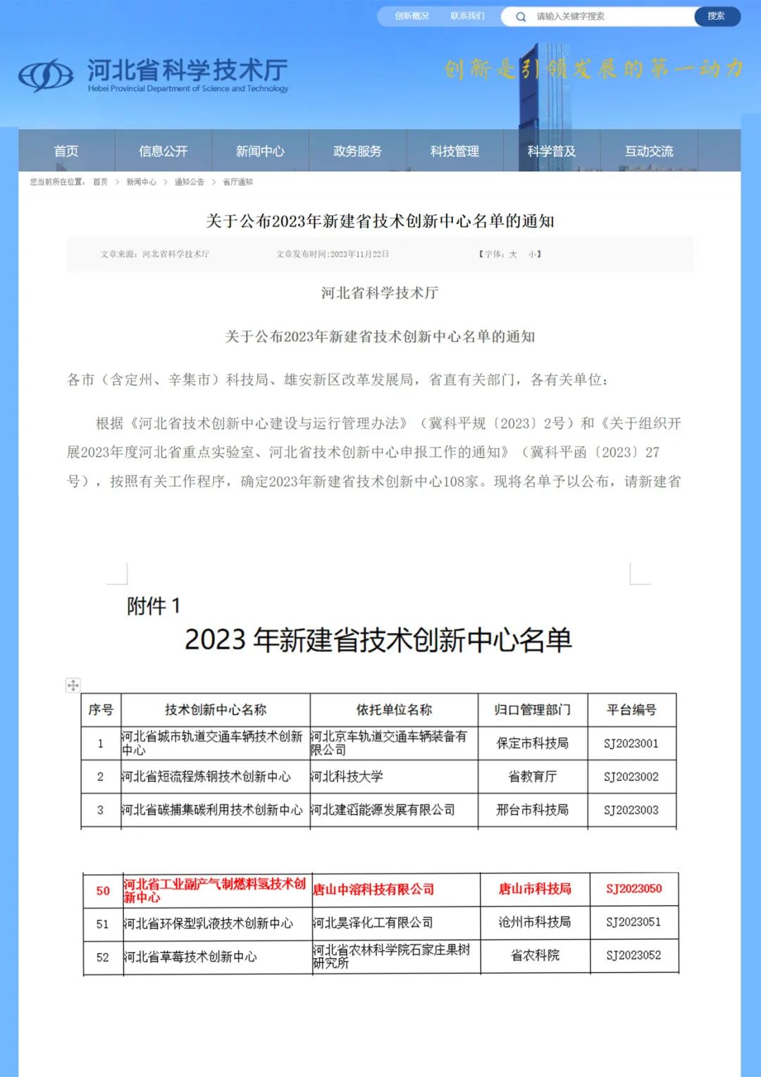 中溶科技獲批“河北省工業副產氣制燃料氫技術創新中心”