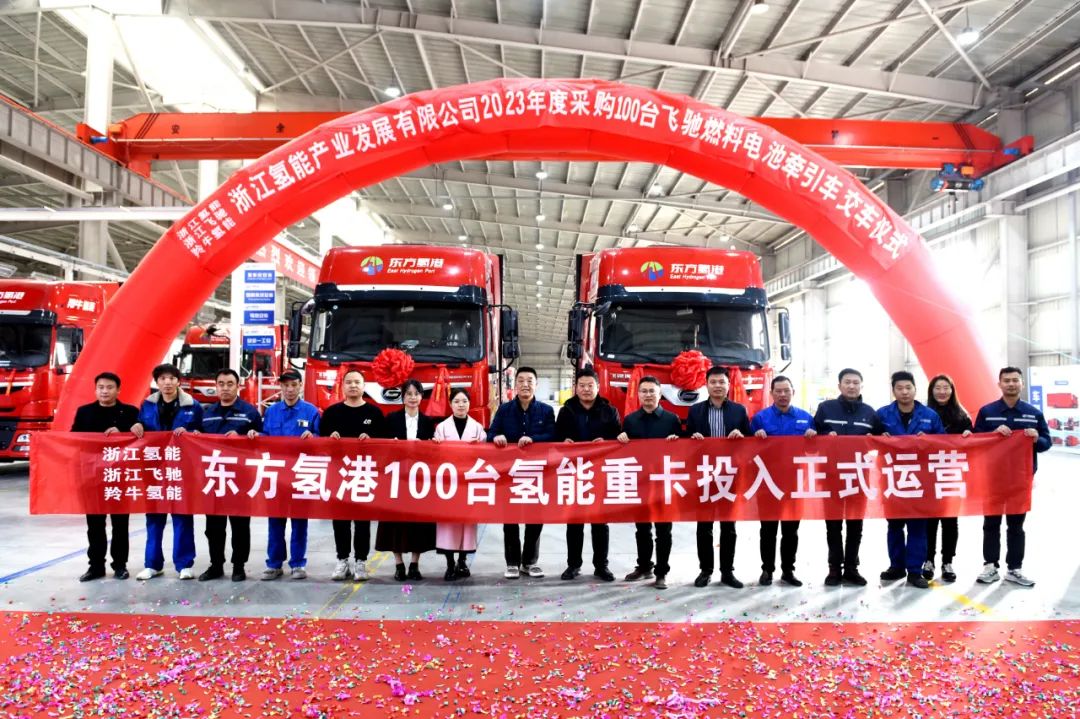 羚牛氫能迎佳訊!東方氫港100臺49噸氫燃料電池重卡正式交付