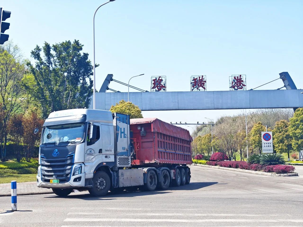 作為長江經濟帶重要物流樞紐的珞璜港,在此次創新實踐中承擔關鍵角色。該項目依托珞璜港“一帶一路”與長江黃金水道交匯的區位優勢,以年吞吐量2000萬噸的散貨集散能力,從鐵路接收大宗原料后,通過氫能重卡實現散貨運輸全程零碳化運輸,形成“水鐵公”無縫銜接的低碳閉環。