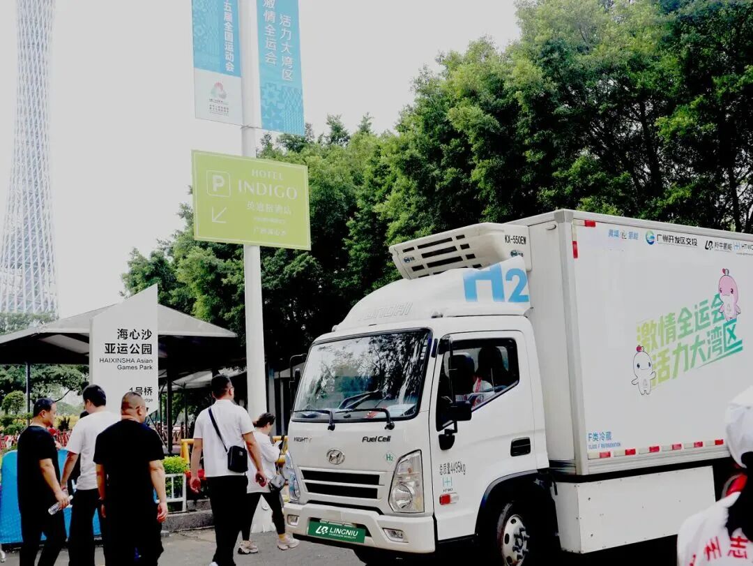 在2025年11月于粵港澳大灣區(qū)舉行的第十五屆全國運動會上,羚牛氫能在廣州開發(fā)區(qū)交投集團的統(tǒng)籌下,與榮達餐飲集團協(xié)作,負責全運會工作人員的餐飲配送,實現(xiàn)了4.5噸氫能冷鏈車在國家級賽事中的首次餐飲配送