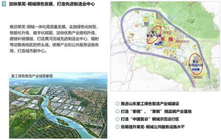 方案明確了“東強”發(fā)展的八大重點板塊,其中第五板塊為加快萊蕪—鋼城綠色發(fā)展,打造先進(jìn)制造業(yè)中心。推動萊蕪-鋼城一體化高質(zhì)量發(fā)展。實施綠色化轉(zhuǎn)型、智能化升級、數(shù)字化賦能,加快優(yōu)勢產(chǎn)業(yè)提檔升級,建鏈補鏈強鏈,打造黃河流域先進(jìn)制造業(yè)中心、輻射帶動魯南地區(qū)的橋頭堡。統(tǒng)籌產(chǎn)業(yè)和公共服務(wù)設(shè)施布局,打造城市副中心。