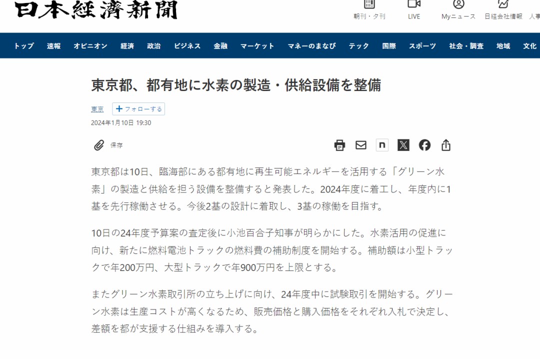 據(jù)《日經(jīng)新聞》消息,東京政府將于2024財(cái)年(2024年4月至2025年3月底)開始建設(shè)三個(gè)綠氫項(xiàng)目,其中一個(gè)項(xiàng)目將在財(cái)年結(jié)束時(shí)投入運(yùn)營(yíng)。