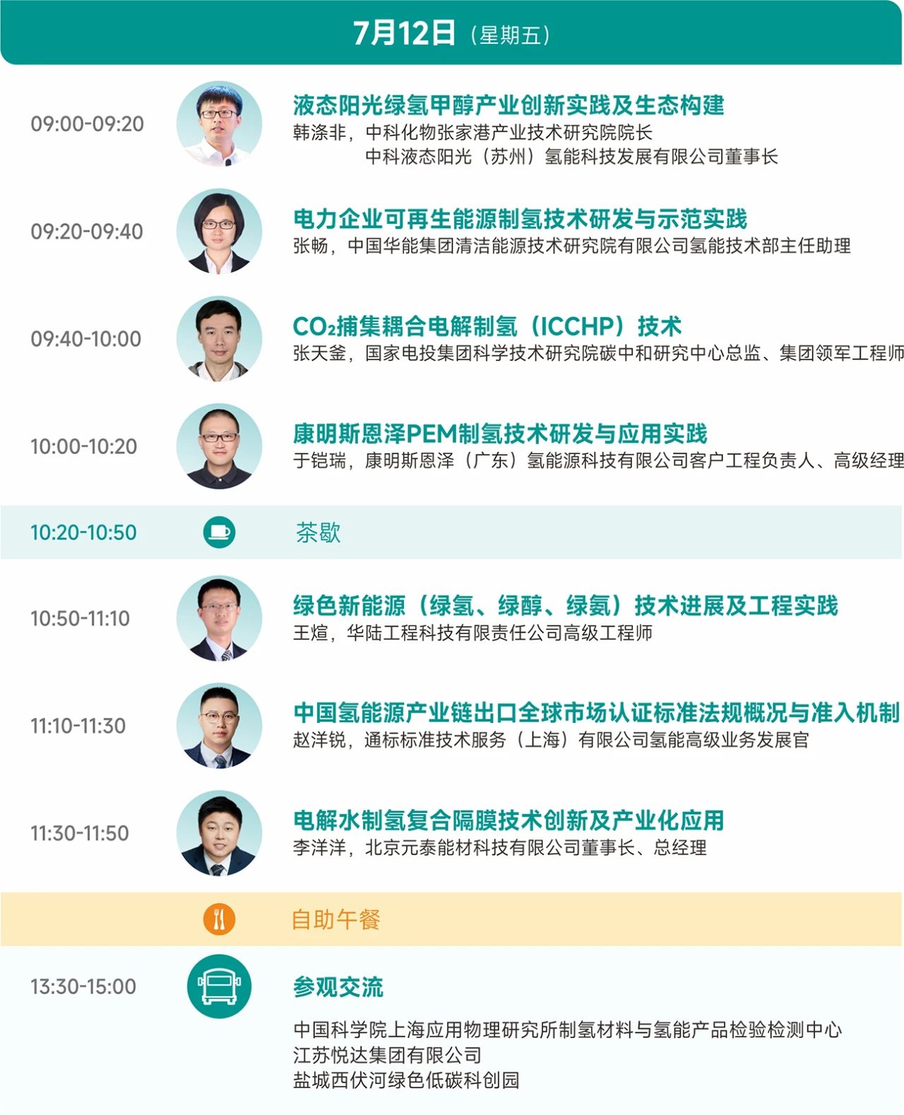◆聚焦可再生能源制氫與多元電力轉換體系(Power to X) ◆匯聚行業內頂級專家和產業鏈上下游代表性企業 ◆大會報告+圓桌對話+標桿交流學習+需求對接+成果對接+產品展覽+特色培訓 報告日程 標桿交流學習 *注:7月12日下午(會議第二天),安排車輛接送,將統一安排參觀,由于參觀人員數量有限。參會代表需與會務組確認參觀預約信息,以防臨近無法參觀。 ◆參訪企業1:中國科學院上海應用物理研究所制氫材料與氫能產品檢驗檢測中心 ◆參訪企業2:鹽城西伏河綠色低碳科創園 ◆參訪企業3:江蘇悅達集團有限公司 供需對接 針對可再生能源制氫產業所涉及的科研機構及研究院、企業、政府和第三方服務機構等的群體,推出現場供需對接服務。
