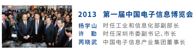 2012年,為落實苗圩部長在《關于國際消費類電子產品展覽會(CES)的匯報》上的批示:“要舉辦全面反應我國新一代技術產業成果的行業博覽會”,由楊學山副部長直接領導,經部辦公廳、電子司等有關部門認真調研,決定在原中國電子展和深圳光電顯示周等展會的基礎上,由工信部聯合深圳市舉辦中國電子信息博覽會 China Information Technology Expo(中文簡稱“電博會”,英文簡稱“CITE”)。