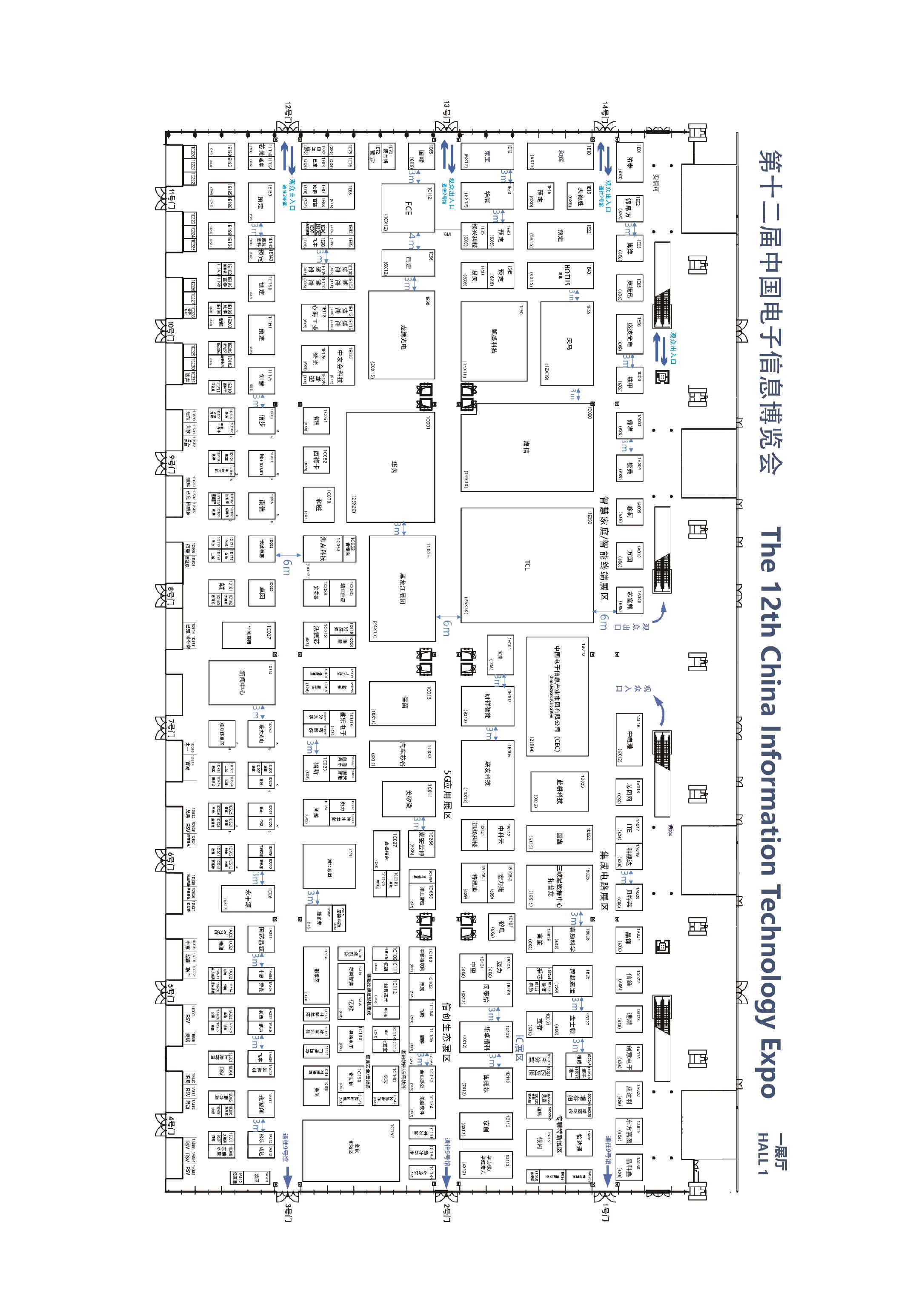 1號館CITE主題館:智慧家庭展區、智能終端展區、信息安全展區、集成電路展區 、大數據與存儲展區、創新科技互聯展區;