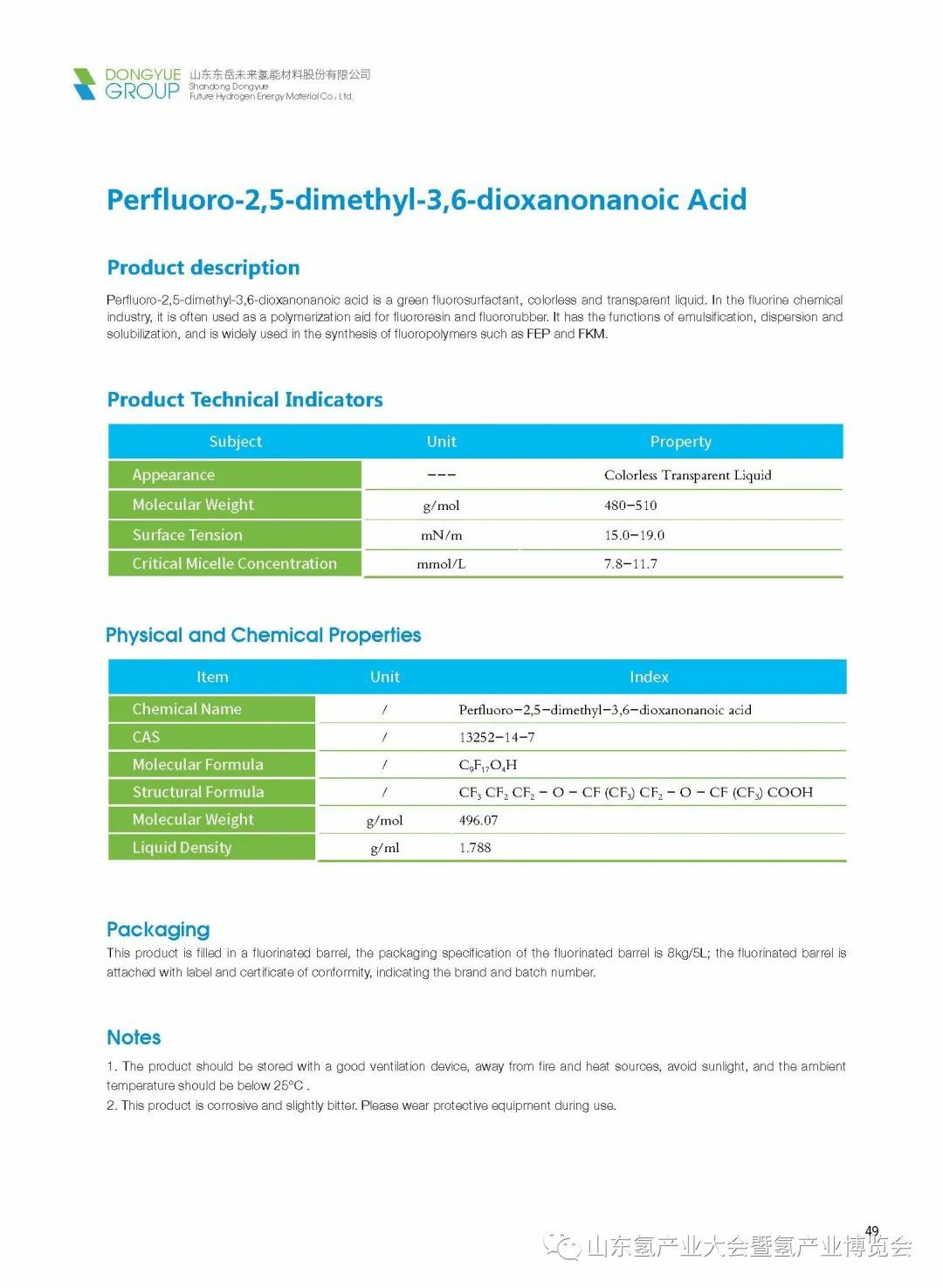 從2020年開始,公司逐步確立了“以全氟磺酸樹脂為代表的高功能含氟聚合物產(chǎn)品集群為中心、以六氟環(huán)氧丙烷代表的含氟精細化學品集群為依托、以燃料電池膜含氟功能膜產(chǎn)品集群為導向”的三個產(chǎn)品集群互相支撐的發(fā)展路線。