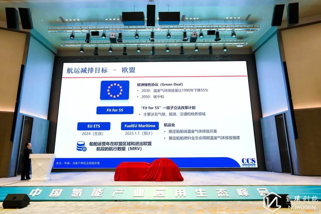 羅肖鋒分享了船舶氫能應(yīng)用現(xiàn)狀和前景、氫作為一種燃料在船舶動力應(yīng)用、展望氫能在船舶領(lǐng)域的應(yīng)用三方面的內(nèi)容。他認(rèn)為氫應(yīng)用從船運端是壓縮氫氣和質(zhì)子交換膜燃料電池的形態(tài)是由可再生能源發(fā)電、電解水制氫、氫儲運和加注是多種形態(tài)組成。未來需要在終端應(yīng)用上主要考慮固體氧化物、內(nèi)燃機等。
