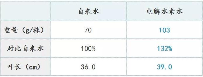電解水素水栽培結果顯示,株高(有5%的顯著差異)更長了,地上部分與地下部分的重量都更重,根有張力。