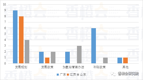 圖表4 排名前三省份已發布氫能和燃料電池產業相關不同政策類型數量