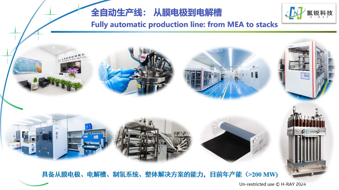 上海氫銳科技有限公司核心技術及團隊自于中國科學院上海高等研究院與全球500強公司氫能領域專業人才組成。通過多年的科研探索技術沉淀,2022年氫銳科技完成了“卷對卷”自動化批量制備大尺寸高一致性膜電極,同時完成了雙極板、涂層、堆棧密封等核心部件的批量生產、檢測驗證,最終形成自主的電堆可靠密封與高一致性制造及裝配工藝,單體電解槽可以達到250NM3/h。