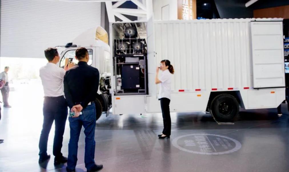(2019年5月22日,參觀者在江蘇如皋氫能小鎮參觀汽車文化館里的氫燃料物流車。圖/IC)