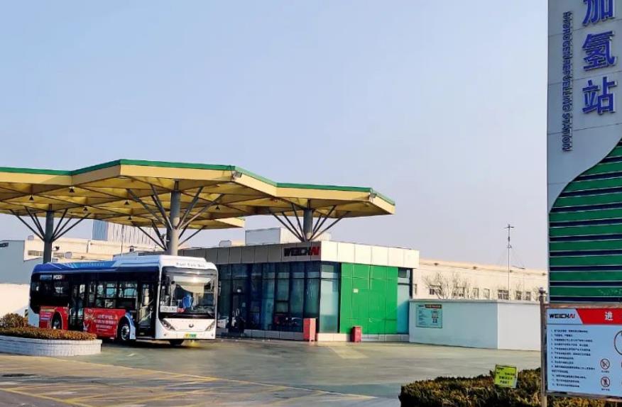 (在山東濰坊市濰柴加氫站內加氫的公交車。圖/濰柴動力)