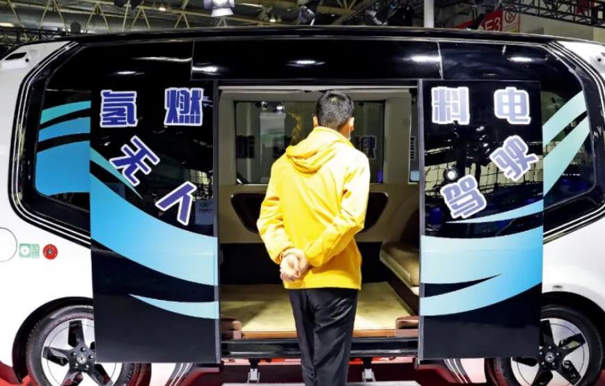 (2020年11月11日,2020世界智能網聯汽車大會上展出的氫燃料電池無人駕駛車。圖/視覺中國)
