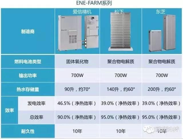 ENE-FARM項(xiàng)目主要燃料電池型號