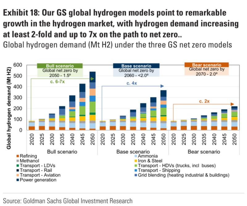 高盛認為,清潔氫(綠氫)已成為實現全球凈零排放的關鍵支柱,有助于減少全球溫室氣體排放的15%。