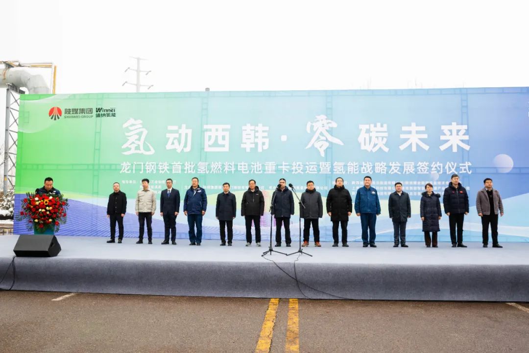 1月18日,由陜西省工業(yè)和信息化廳、陜西省能源局、韓城市人民政府指導(dǎo),陜鋼集團(tuán)陜西龍門鋼鐵有限責(zé)任公司(以下稱:龍鋼公司)主辦,維納氫能承辦,陜西旭強(qiáng)瑞清潔能源有限公司、上海重塑能源科技有限公司、北京氫璞創(chuàng)能科技有限公司協(xié)辦的“龍門鋼鐵首批氫燃料電池重卡投運(yùn)暨氫能戰(zhàn)略發(fā)展簽約儀式”在韓城市龍門鋼鐵廠區(qū)成功舉辦。