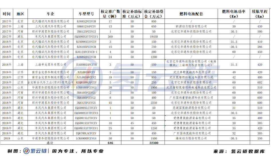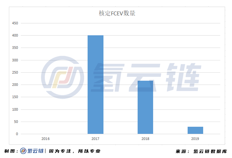 至此,2016-2019年度新能源汽車(chē)推廣應(yīng)用中共核定燃料電池汽車(chē)為646輛。總補(bǔ)貼金額達(dá)到3.225億元。其中2016年為0輛;2017年為400輛;2018年為216輛;2019年為30輛;