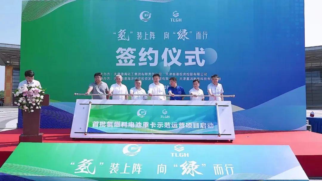 在8月15日的上午,一場名為“氫裝上陣,向綠而行,攜手共筑低碳未來”的主題活動在天津港保稅區臨港區域天津市氫能示范產業園廣場舉行。此次活動的亮點是保稅區啟動了首批氫燃料電池重卡示范運營項目。