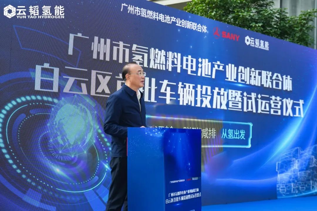 本次車輛試運營儀式在廣州市發(fā)展和改革委員會、白云區(qū)人民政府的指導(dǎo)下,由廣州市氫燃料電池產(chǎn)業(yè)創(chuàng)新聯(lián)合體、廣東云韜氫能科技有限公司共同主辦。