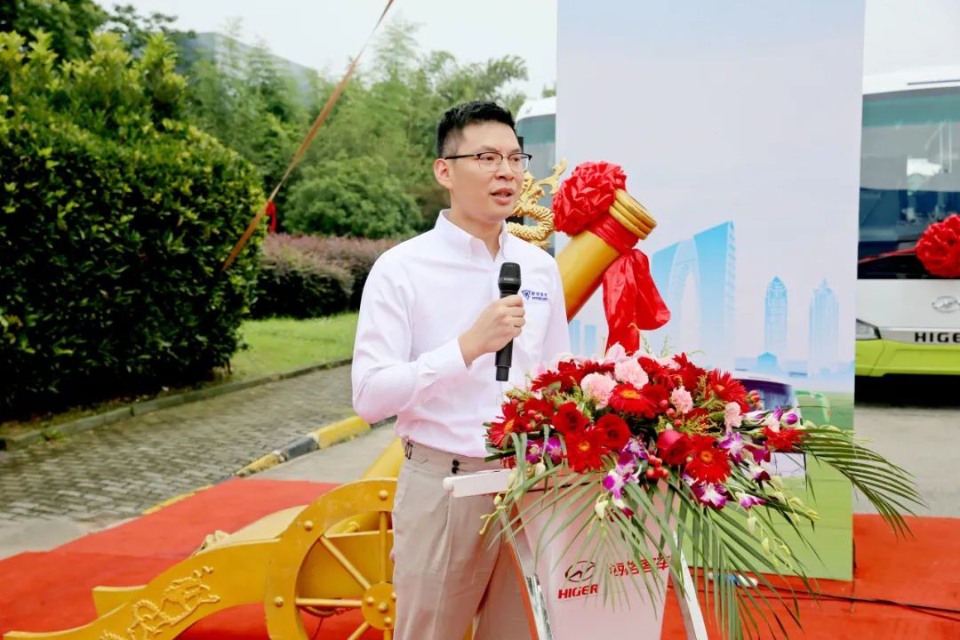 趕趟出行總經理李創達對即將接手的這批新車表示滿意,他現場賦詩一首,暢想了在三方合作下利用氫能客車這種新質能源車輛擴充公司客車隊伍,服務廣大公眾的場景。