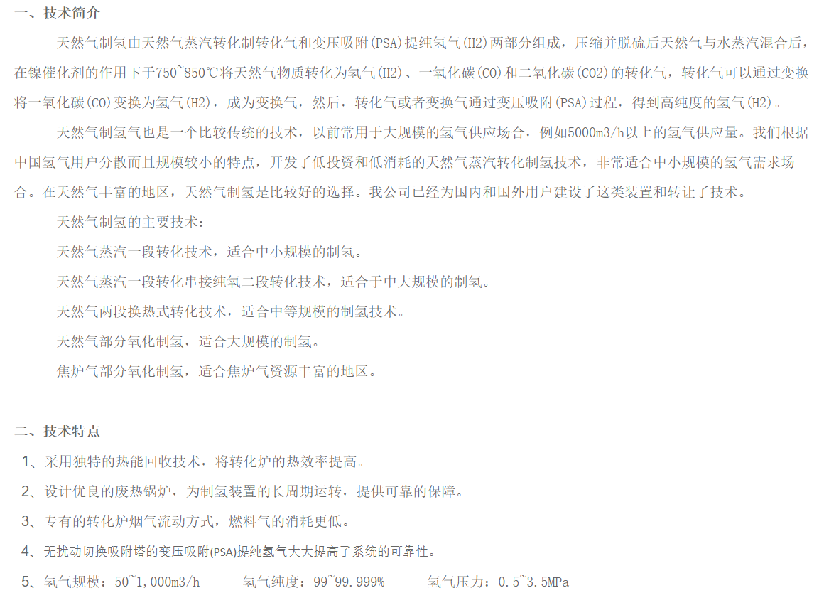 商品名稱:天然氣轉化制氫